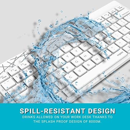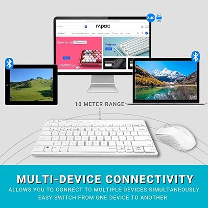 The Rapoo 8000M White Combo Bluetooth is a sleek and modern wireless keyboard and mouse set designed for productivity and convenience. Featuring Bluetooth connectivity, this combo offers a clutter-free workspace with a reliable connection range of up to 10 meters. The keyboard and mouse are designed with a slim, ergonomic profile, making them ideal for both home and office use. With its spill-resistant keyboard and energy-efficient design, this combo ensures durability and long-lasting performance.