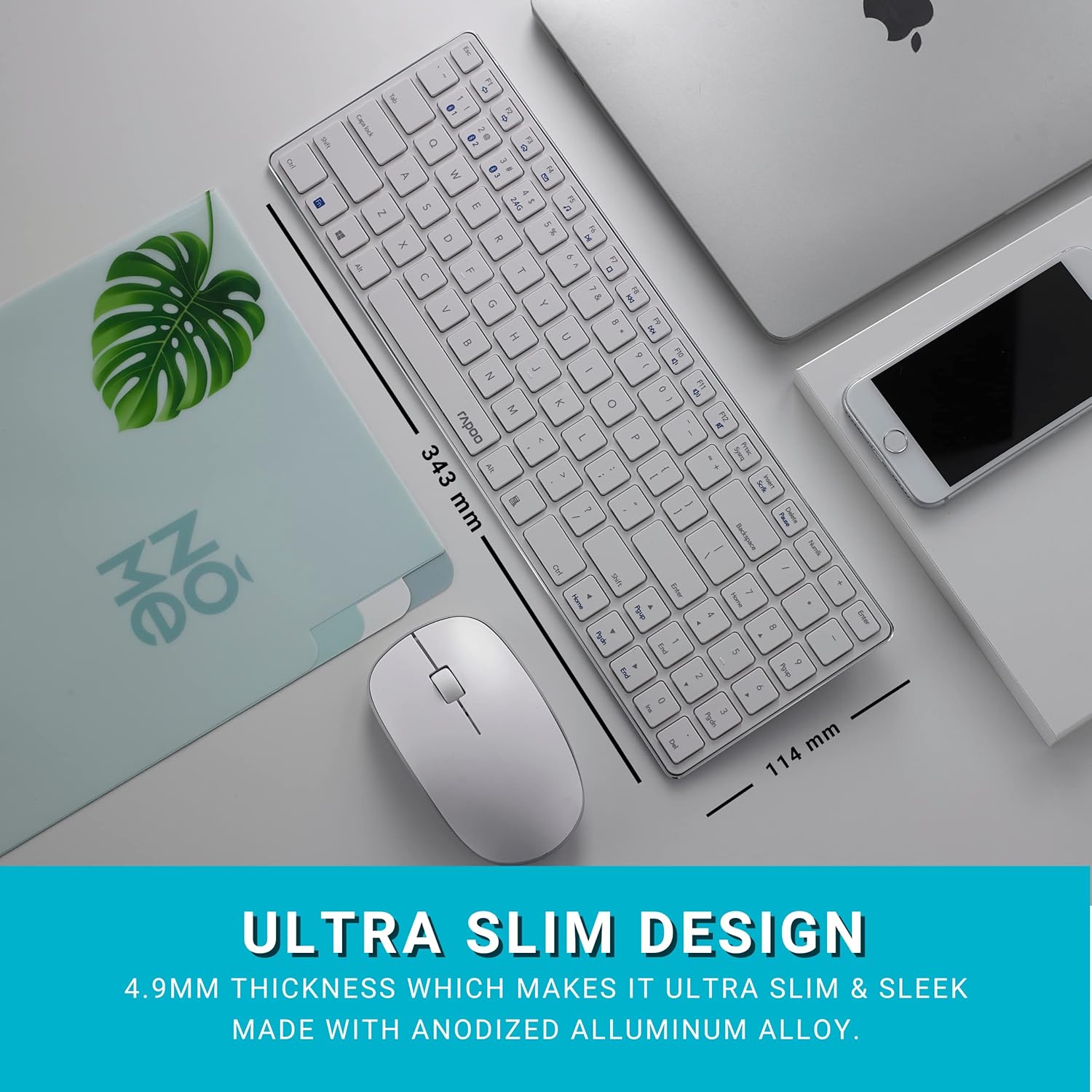 The Rapoo 9300M White Wireless Multimedia Combo is a sleek and stylish keyboard and mouse set designed for modern users seeking convenience and functionality. With a 2.4GHz wireless connection, this combo offers a reliable working range of up to 10 meters, making it ideal for home, office, or entertainment setups. The keyboard features multimedia shortcuts and a spill-resistant design, while the ergonomic mouse ensures comfort during extended use. This plug-and-play combo is perfect for enhancing productivity and simplifying your workspace.