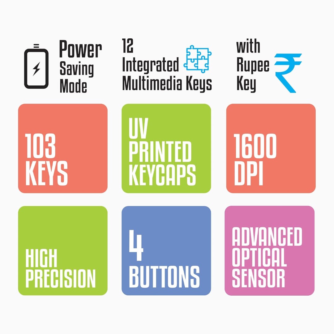 The Zebronics (Graphite Red) Wireless Keyboard and Mouse Combo is a compact, ergonomic solution designed for seamless functionality and stylish aesthetics. Perfect for laptops and PCs, this combo offers multimedia convenience, precise navigation, and energy-efficient performance, making it ideal for both home and office use.