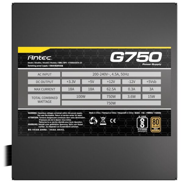 Upgrade your PC with the Antec G750 Semi-Modular 750W Power Supply, engineered for efficiency, stability, and intelligent cable management. With 80 Plus Gold certification, this PSU ensures optimal power delivery and reduced energy waste, ideal for high-performance gaming systems, content creation rigs, or productivity workstations. Its semi-modular design allows for cleaner builds and improved airflow, while the compact SFX form factor makes it compatible with space-conscious setups. Built by Antec—a trusted name in PC hardware—the G750 offers superior quality, safety features, and long-term reliability for discerning users.