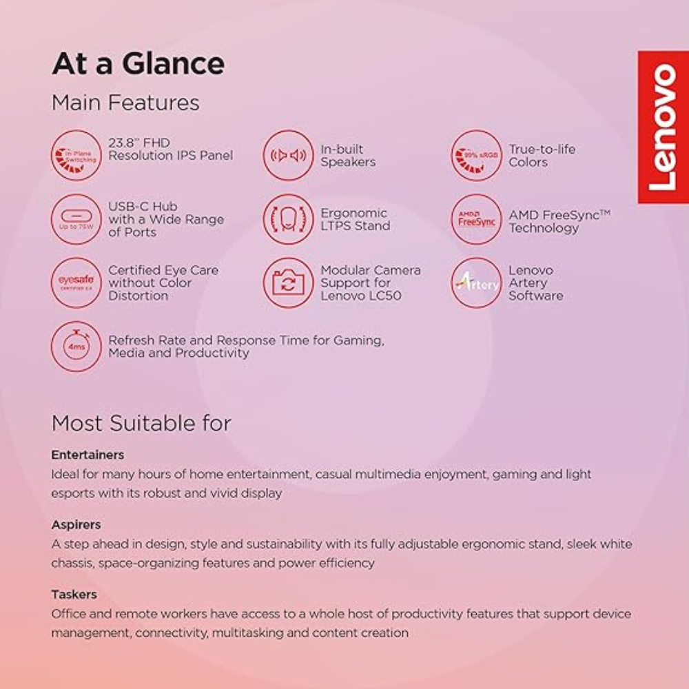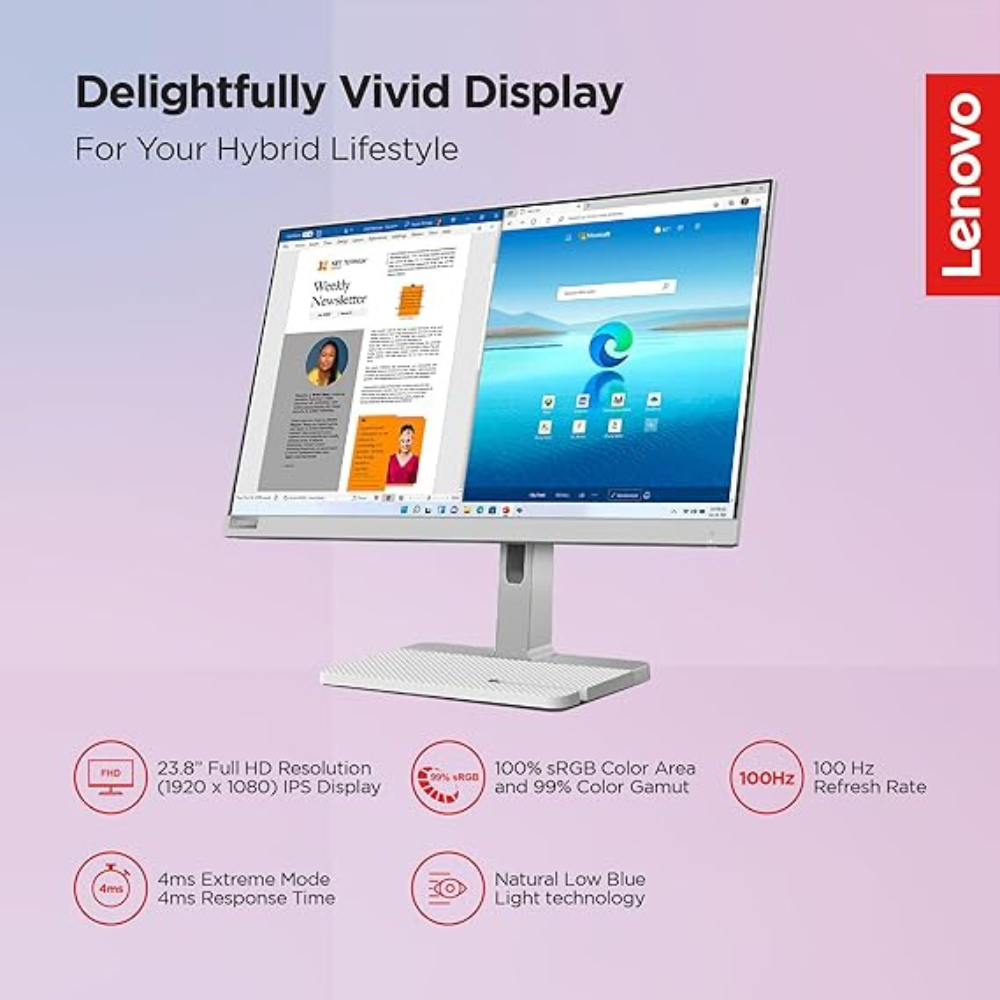 The Lenovo L24M-4A 23.8-Inch Ultra-Thin IPS Monitor is the perfect combination of style and performance. Its ultra-thin design and narrow bezels make it ideal for modern setups, whether you’re working, gaming, or streaming your favorite content. Featuring a Full HD IPS display, it delivers crisp and vibrant visuals from any angle. With AMD FreeSync technology and a 75Hz refresh rate, it provides a smooth and immersive viewing experience.