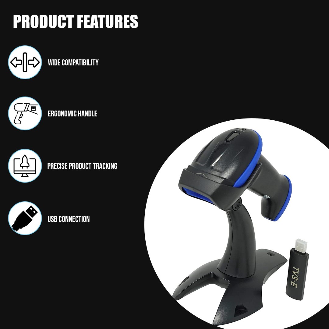 TVS BT BS-L150S WL is a lightweight wireless laser barcode scanner that offers superior performance and outstanding durability, making it an ideal solution for demanding environments such as supermarkets, shopping malls, and warehouses. Its 2.4 GHz wireless connectivity ensures hassle-free scanning and accurate aiming. The scanner boasts a substantial 4MB storage capacity and an ergonomic design for comfortable, extended use.